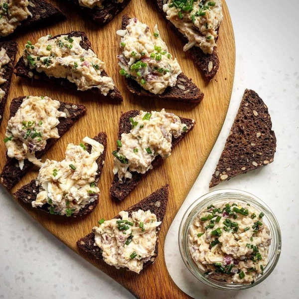 Додайте розм’якшене масло, сіль і перець, перемішайте. Помістіть у миску та охолодіть у холодильнику 1–2 години. Подавайте з чорним хлібом або крекерами.