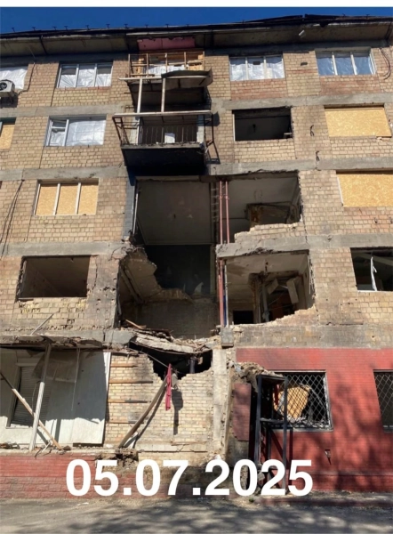 Будівля отримала пошкодження в результаті російського обстрілу столиці в ніч на 4 липня. Після атаки експерти здійснили два етапи перевірки – попередній і докладний інструментальний огляд. Згідно з їхніми висновками, загрози руйнування безпосередньо в цій частині об’єкта не було зафіксовано.