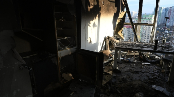 Наслідки масованої атаки по Києву в Дніпровському районі / Фото: Євген Котенко, Укрінформ