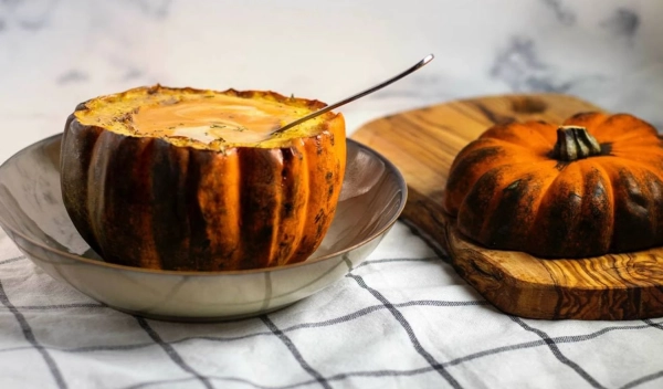 Додати сіль, перець, мускатний горіх і копчену паприку, якщо хочете “димного” присмаку. Подавати в мисці або навіть у самому гарбузі, прикрасивши лінією вершків у вигляді “привида”.