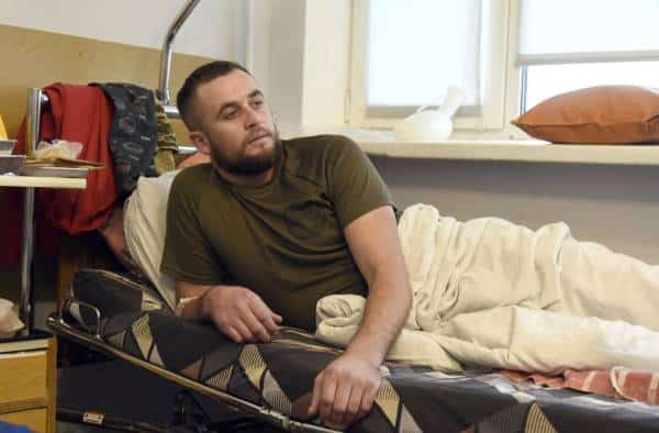 Віктор Ільчук із Житомирщини призвався рік тому у десантно-штурмові війська. Після двох місяців навчальних тренувань воював на Запорізькому напрямку. Отримав контузію і поранення. Лікувався з минулого літа у Запоріжжі, Житомирі, тепер – у Києві зробили операцію на коліні. Військовий, в якого попереду реабілітація, теж дякує лікарям і волонтерам. Каже: «Волонтери дуже допомагають».
