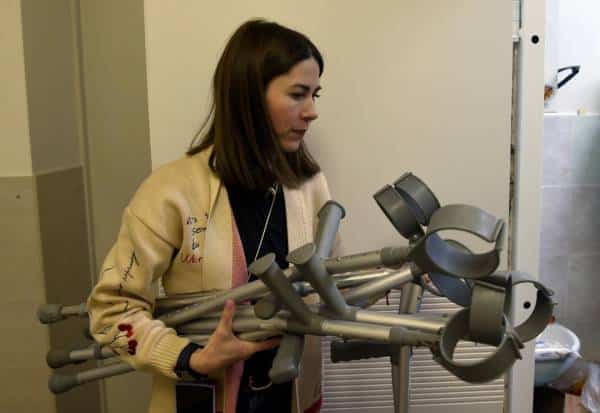 Волонтерка розповідає: «Після початку повномасштабної війни я виїжджала до Польщі в містечко Рибнік. Коли Женя Адвена збирала для поранених милиці – то я там звернулася по допомогу до місцевих мешканців через поляка, в якого мешкали. Відгукнулися. Ми привезли до Києва возики і милиці».