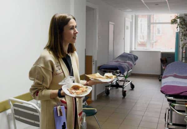 Вже багато місяців поспіль добровольці організовують смачні суботи: привозять домашні, щойно приготовані наїдки. Не тому, що в лікарнях не годують хворих. А тому, що пиріжки, львівський сирник, яблучна шарлотка, чебуреки та інші смаколики – це вдячність за можливість під час жорстокої російсько-української війни жити в тилу. До ініціативи долучається, зокрема, знана акторка Даша Легейда-Сова – дочка та дружина наших оборонців.