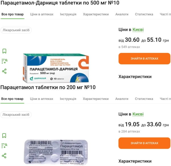 Наприклад, популярний «Парацетамол» від «Дарниці» коштує 30,60 грн, тоді як його аналог від «Артеріуму» можна придбати за 19,05 грн. Схожа ситуація і з іншими жарознижувальними засобами: «Ібупрофен» від «Дарниці» коштує 70,30 грн, тоді як «Лекхім» пропонує свій препарат за 61,17 грн. У сегменті седативних засобів «Валідол» від «Фармака» коштує 12,50 грн, а препарат від «Дарниці» – 14,80 грн.