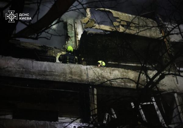 У Печерському районі Києва зафіксовано попадання у 22-поверховий житловий будинок. Зруйновано поверхи з 4 по 8. Там пожежу вдалося ліквідувати, здійснюється розбір завалів. Рятувальники визволили одну маломобільну особу з будинку.